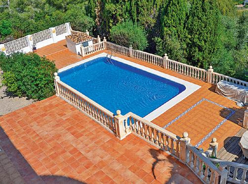 Large villa with two separate dwellings. 3+3 bedrooms, 3+2 bathrooms, air conditioning, carport, large swimming pool, open views and sea views.