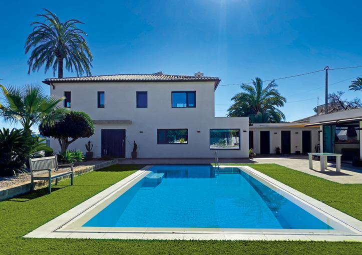 temperature of the water to 4-5 degrees. Sunny terraces, two carports, and a garden with a playground. In the lower level, we will find a GYM, SPA area with Hammam, Jacuzzi, shower, small kitchen, and technical rooms. Esta villa cuenta con 5 dormitorios, 5 baños, cocina semiabierta distribuida en cuatro niveles comunicados con ascensor. En el exterior encontraremos una piscina climatizada de 48 m² de agua salada con cubierta de control eléctrico que, incluso sin calefacción, aumenta la temperatura del agua hasta 4-5 grados. Terrazas soleadas, dos cocheras y jardín con parque infantil. En el nivel inferior, encontramos un gimnasio,v una zona de SPA con Hammam, jacuzzi, ducha, pequeña cocina y salas técnicas.