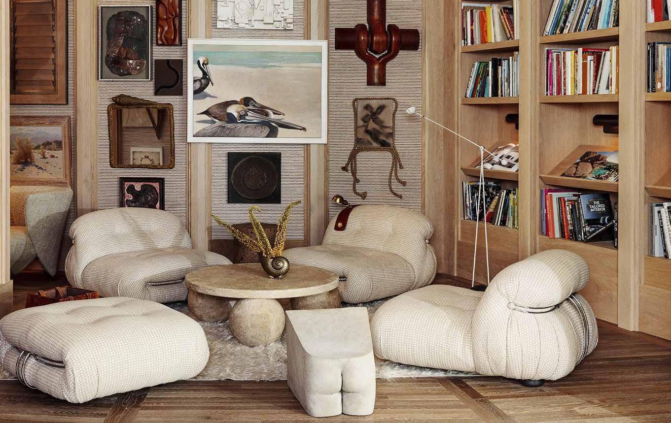 “Paletas de areia, pisos de madeira clara e texturas orgânicas definem o cenário para obras de arte de Ben Medansky, Morgan Peck e Tanya Aguiniga. Wearstler possui um currículo ilustre, com uma série de elogios, incluindo um lugar elogiado na lista dos 100 melhores arquitetos e designers proeminentes da Architectural Digest” . Fala Kelly.