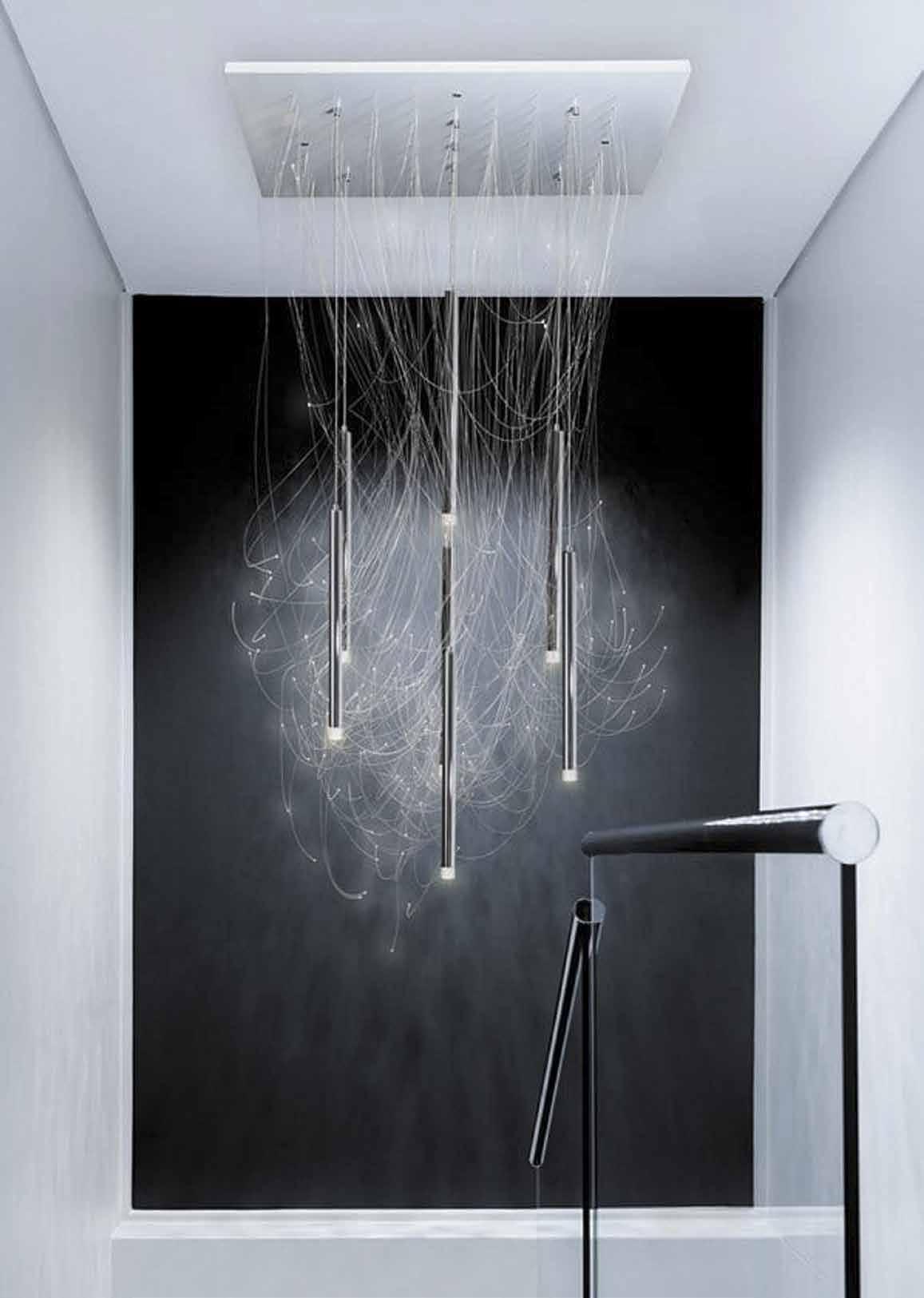 Surpreendentes fibras óticas são adicionadas a este conjunto de tubos, trazendo uma dimensão exclusiva e cativante para o projeto. A iluminação do L7 é ajustável, o que permite isolar a fibra ótica para uma renderização mais suave e quente. A caixa lustre levemente trabalhada pode ser totalmente integrada ao teto para um resultado discreto e excepcional.