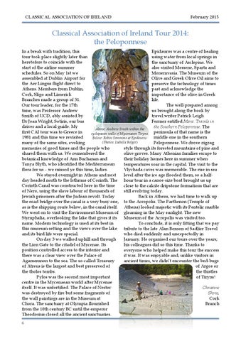 Classical Association of Ireland Tour 2014: the Peloponnese In a break with tradition, this