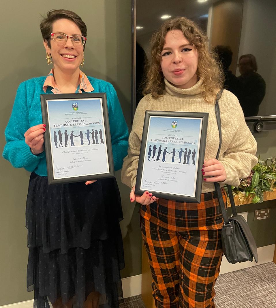In staff news, we congratulate Dr Bridget Martin and Eleanor Kellett for winning 2021/22 College of Arts and Humanities Teaching and Learning awards (bottom left). Dr Martin won in the Teaching Excellence category, and Eleanor, a first-year PhD student writing a thesis on ‘Tattooing in the Classical World’, in the Outstanding Contribution to Learning category.