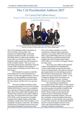 The CAI Presidential Address 2017 Dr Carmel McCallum-Barry: Women in Classics: some landmark achievements from the Renaissance to the twentieth century