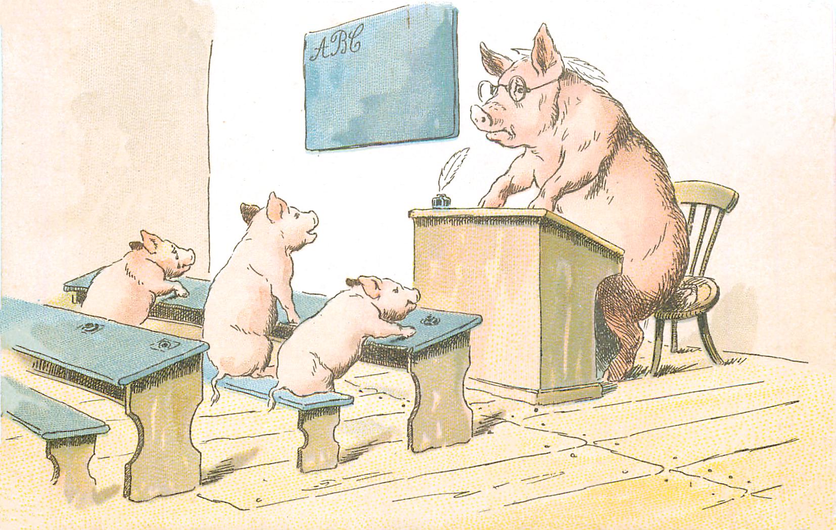 But now you see these little pigs are more apt to dance little jigs. Oink, oink, say the pigs. Come one and come all. This is the way to the pork party ball.