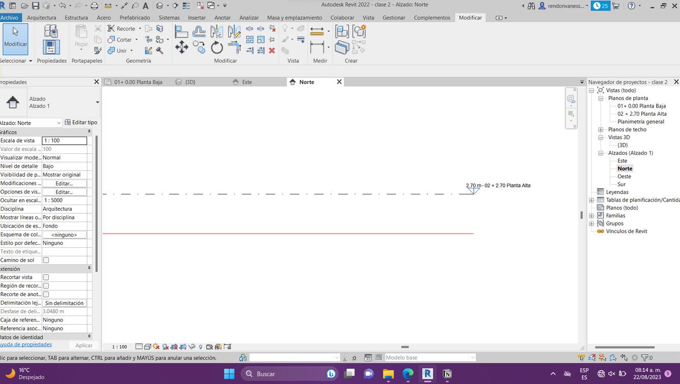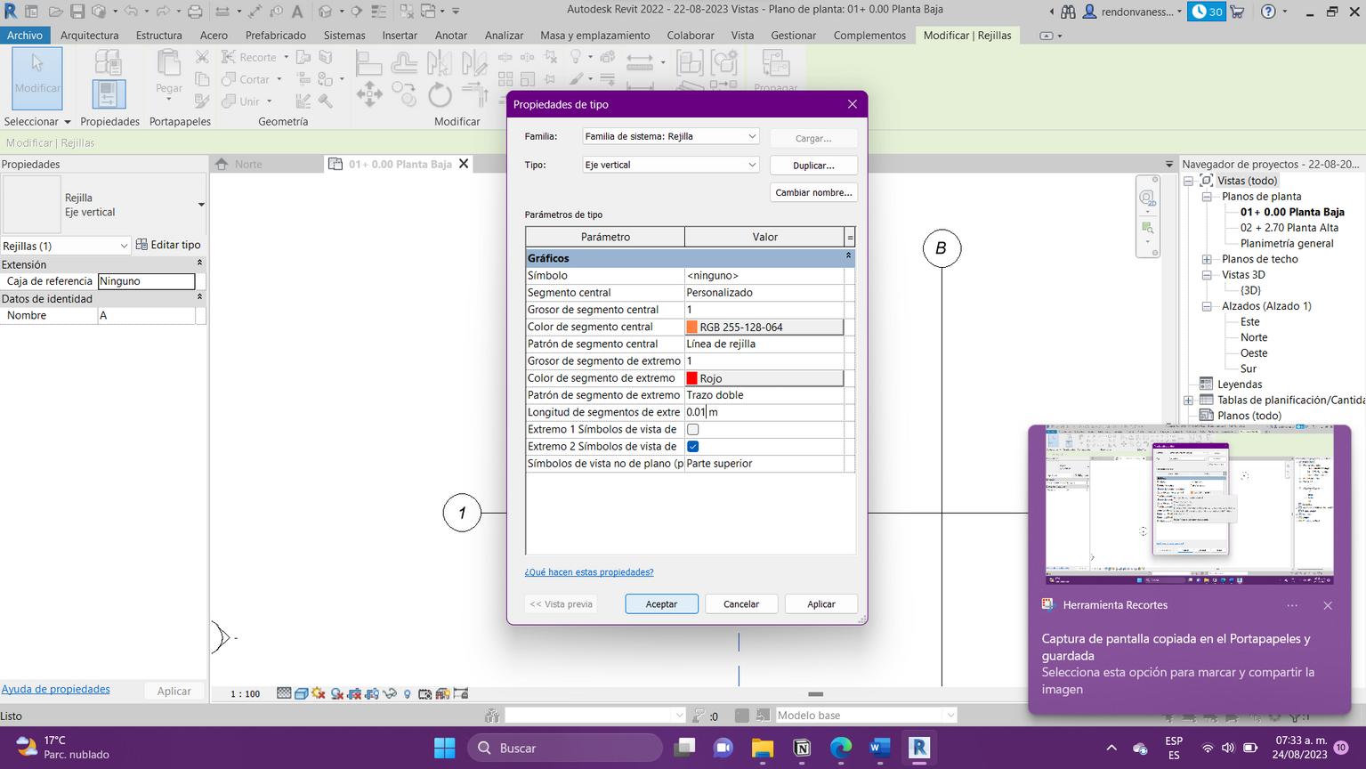 Para colocar ejes, vamos en la caja de herramientas y seleccionamos la función "nivel " , de ahí solo damos clicks sobre el área de trabajo y extendemos la línea para crearlo y se crearán de manera automática (líneas). Al dar doble clic sobre el texto podemos modificarlo.