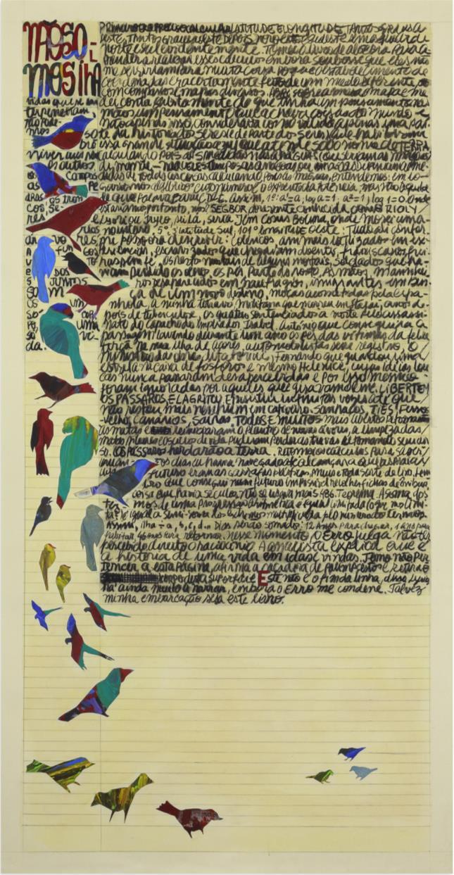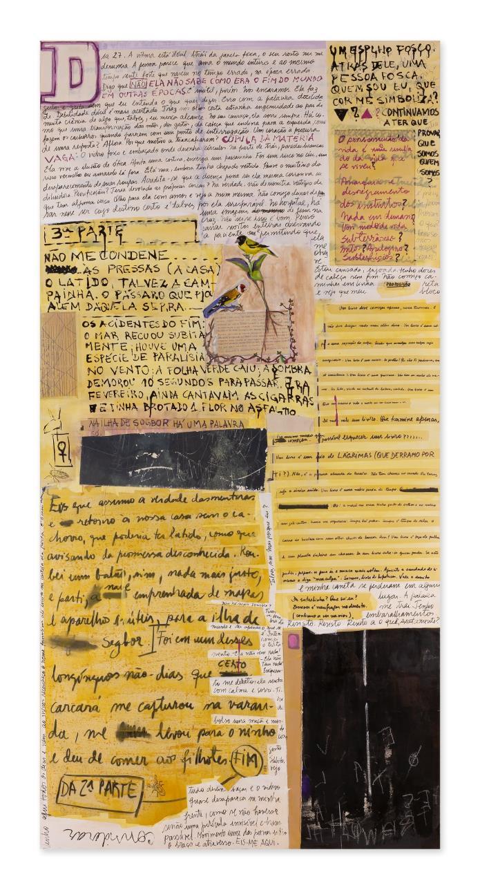 Acrílica, caneta acrílica, grafite, caneta esferográfica e colagem sobre tela 199x97cm