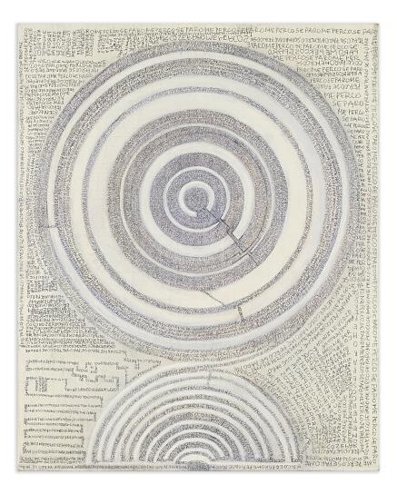 Carvão, grafite, acrílica, têmpera, pregos e barbante sobre tela