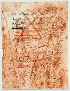 Grafite, crayon e carvão sobre papel oriental enterrado (e desenterrado) em tauá.