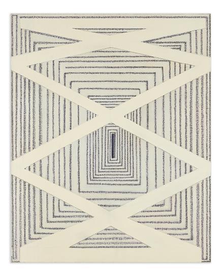 Carvão, acrílica, caneta acrílica, grafite, fita adesiva e colagem sobre tela ; 199 x 194 cm