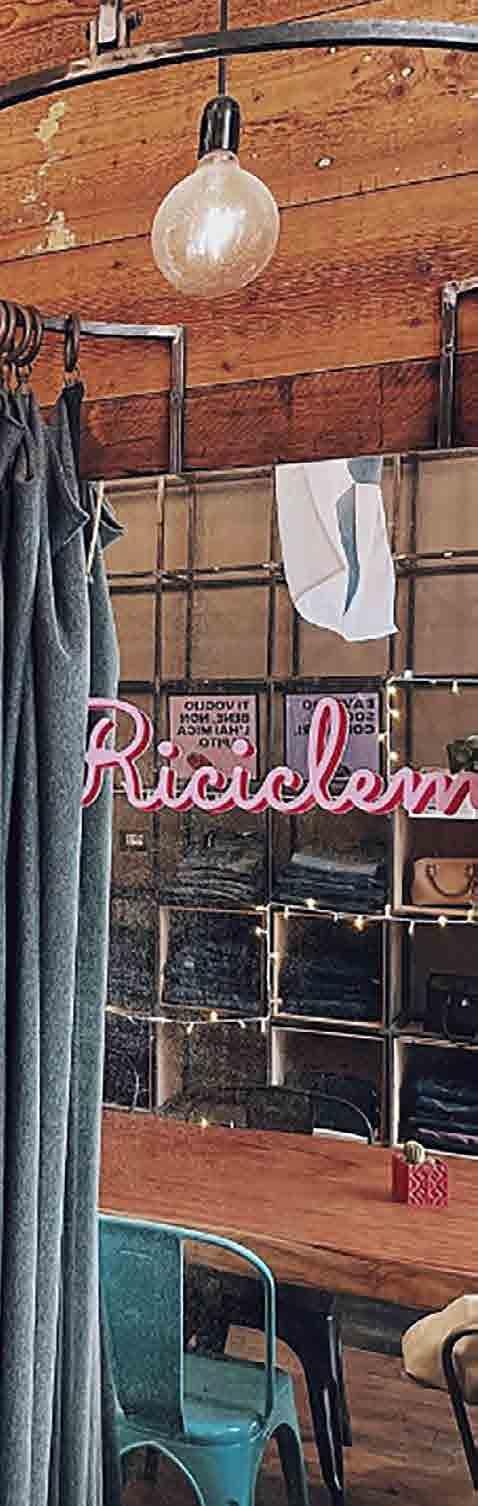 All’inizio facevo più shooting ma dal punto di vista delle vendite la gente aspettava che in dossassi io i capi. Ho instaurato un rapporto di fiducia con il mio pubblico infatti Ricicle mi è diventato un ibrido tra un brand e un influencer. Chi mi segue si fida del modo in cui indosso i capi, di quello che dico e di come lo dico. Ma è anche per una questione pratica: propongo nuovi vestiti ogni giorno quindi fare uno shooting con questa cadenza sarebbe impossibile. In una mia giornata tipo al mattino preparo gli outfit, ritiro pacchi e vado in mercatini rionali alla ricerca di qual che chicca. Durante l’ora del pranzo preparo tutti i contenuti social, perché la gente mi ha detto espressamente che subito dopo pran zo si siede con un buon caffè e guarda le mie stories, mentre nel pomeriggio vado da Pun to. Nel complesso passano le otto ore lavora tive standard. Tutto quello che vedi è venuto