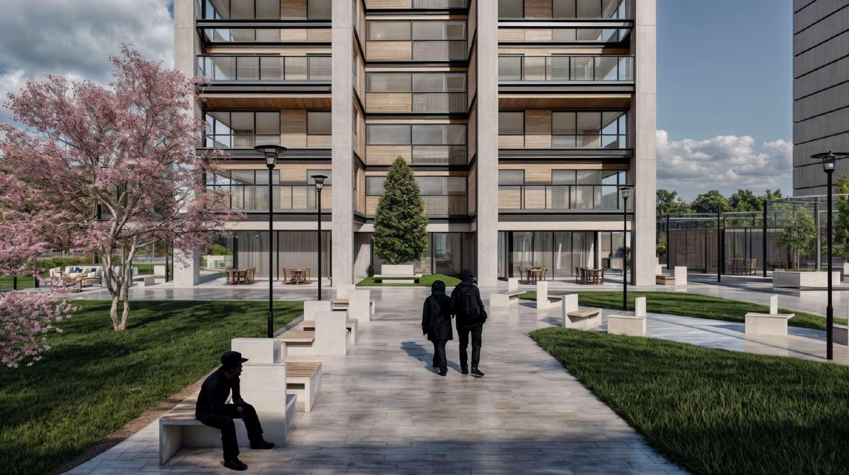 El diseño integra un patio central que potencia la ventilación e iluminación natural, además de convertirse en un espacio de convivencia a través de sus pasillos y balcones comunes junto a la circulación vertical. Los jardines verticales actúan como aislantes naturales y se mantienen con aguas lluvias recolectadas. Paneles solares ubicados en la planta 9 abastecen el sistema de agua potable y la iluminación de las áreas comunes.