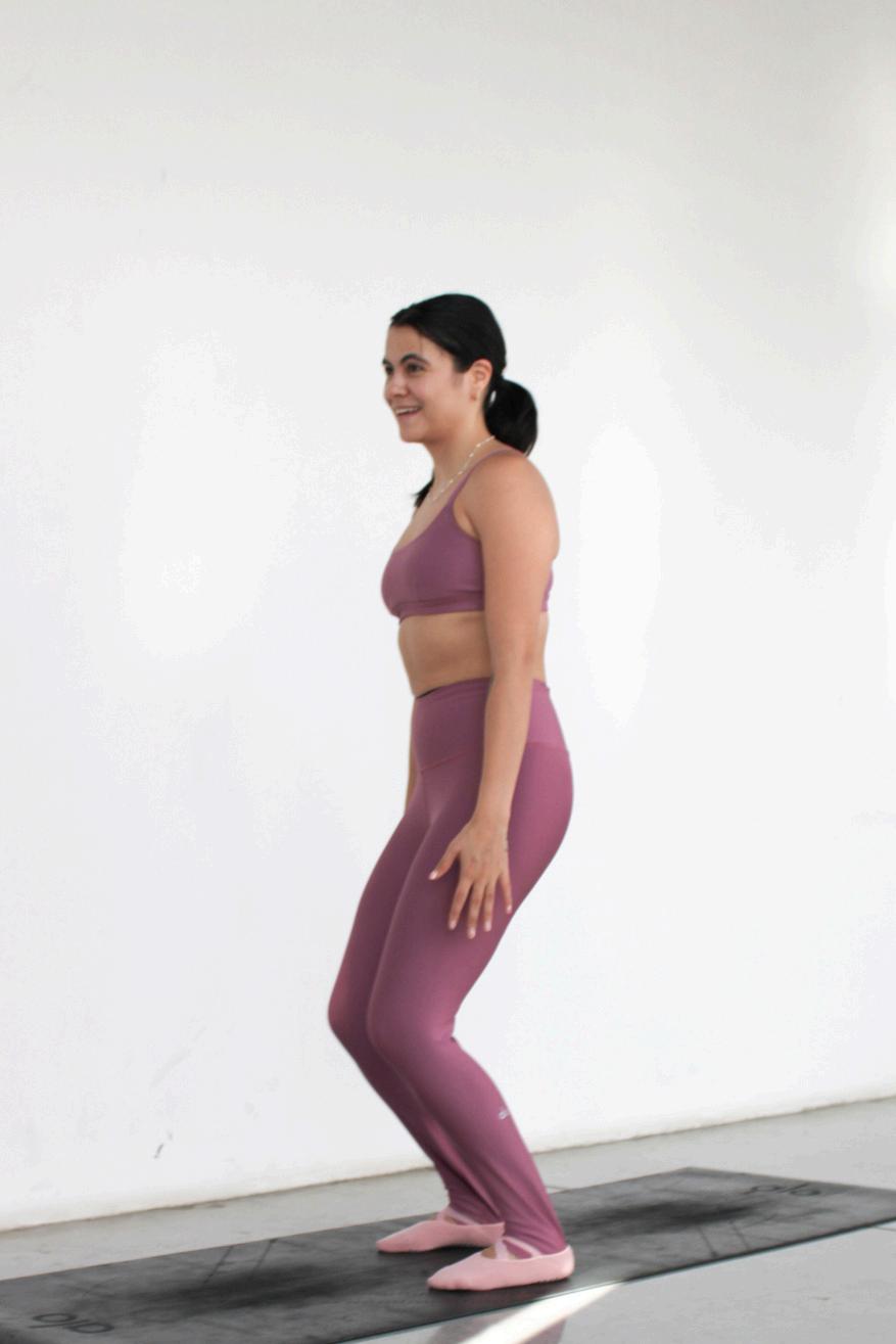 Ponte de pie, con los pies separados al ancho de las caderas, unos 20 cm aproximadamente