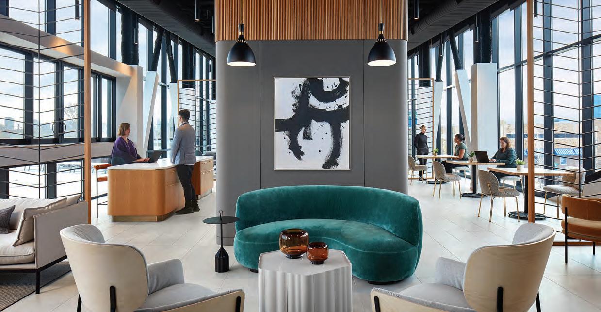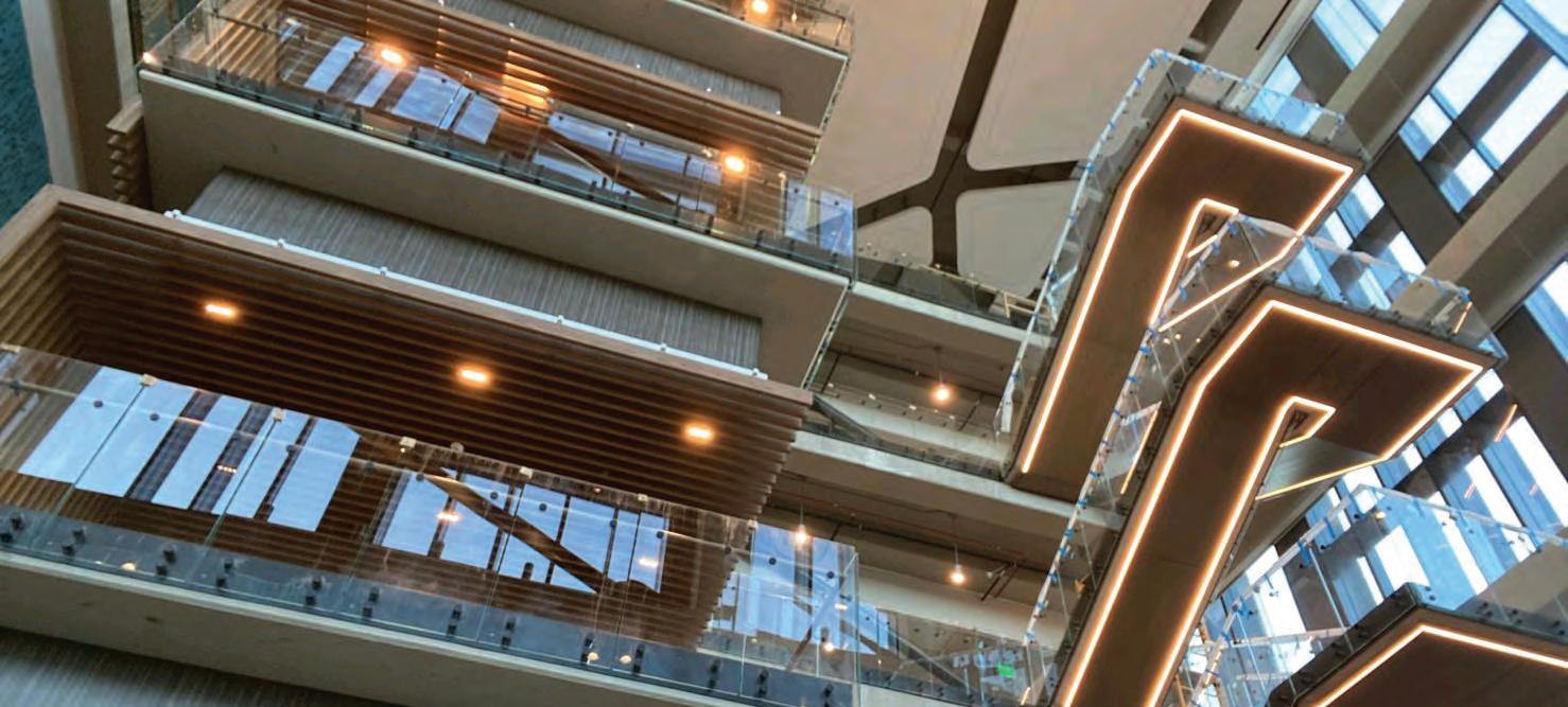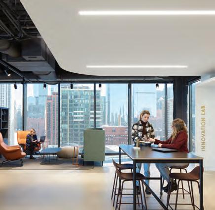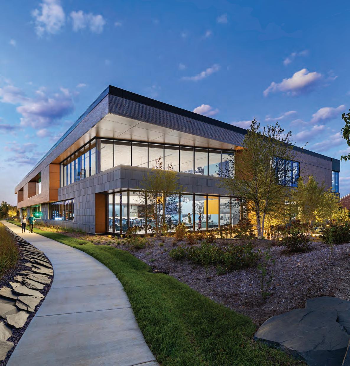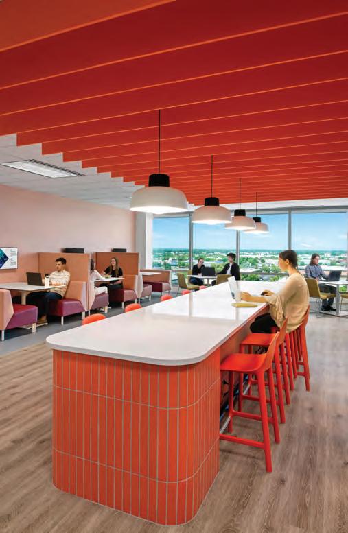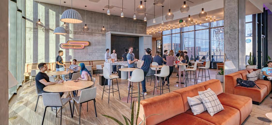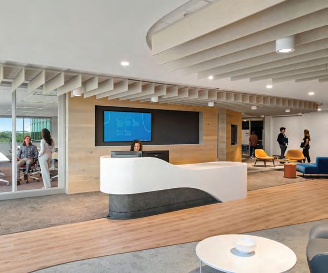 TREEHOUSE Designed by LS3P, this Class A office campus paves the way for the next generation of corporate offices focused on top-tier recruiting, retention, and agile operations. The exterior prioritizes open views to create a sense of “working in a treehouse” with vertical facade elements that mimic a tree’s trunks and branches. The awe-inspiring lobby acts as the building’s central collaboration space.