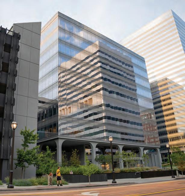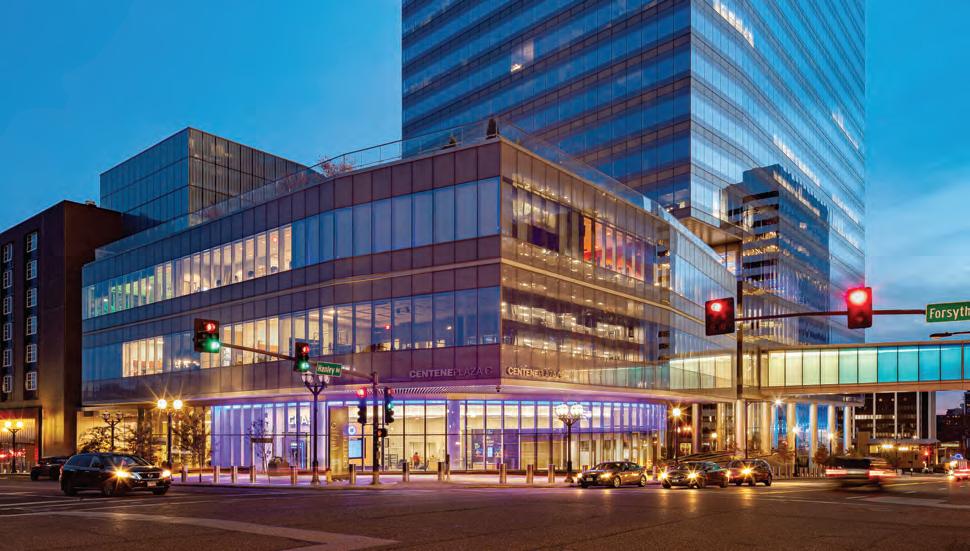 A NEW LOOK Clayco, LJC and Ventana teamed up on the reclad and redesign of Centene Plaza A . The new glass is heat strengthened, twice as strong, three times as thick and it matches the newer Centene Plaza buildings.