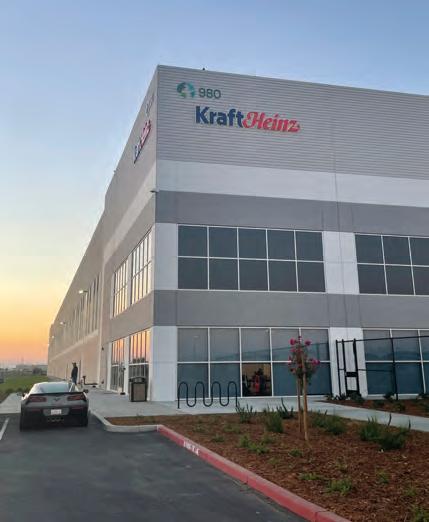The new Kraft Heinz distribution center in Lathrop, California was developed by Prologis . The 652,000-square-foot facility includes 185,386 square feet of refrigerated space and 451,800 square feet of dry storage.