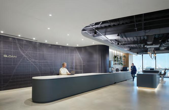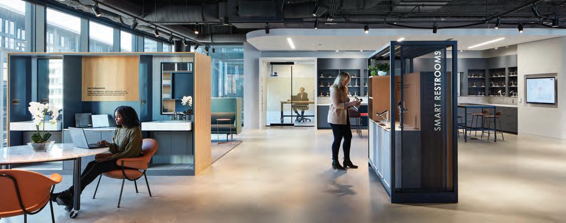 SHOW AND TELL Sloan wanted to create a showroom for hospitality, learning (product & sustainability), and collaboration. The LJC design team developed a flexible space and modern displays that minimize their physical footprint and maximize their substantial product offering while weaving in their primary mission of water conservation, efficiency and quality.