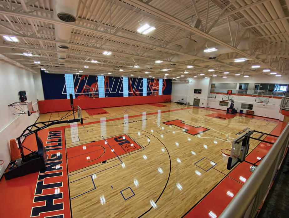 DOUBLE DRIBBLE The expansion of the existing Ubben Basketball Complex at the University of Illinois in Urbana-Champaign will double the size of the current facility to a total of 75,000 square feet. This addition provides half-court practice space, coaches offices, meeting rooms, and sports medicine areas.