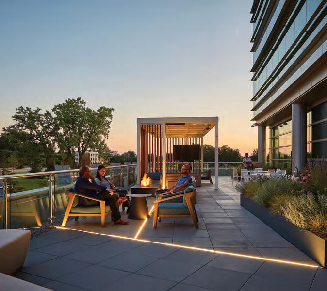 REPURPOSED AND RENOVATED LJC’s design for Centene’s Clayton campus update was to unify four city blocks while improving employees’ and the community’s experience. The project scope included the redevelopment of the streetscape, a new welcome center, and the redesign of three plaza areas leading to the entrances of campus buildings.