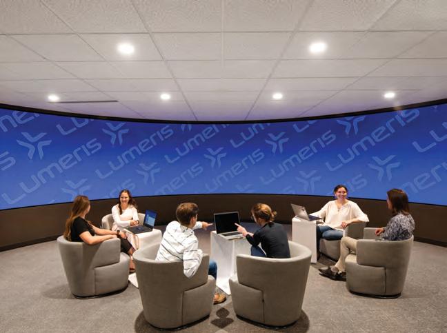 The LJC team designed a new technology-rich workplace that welcomes clients and encourages client collaboration for Lumeris . The project hosts a combination of amenity spaces embedded within a functioning open office floor plan.