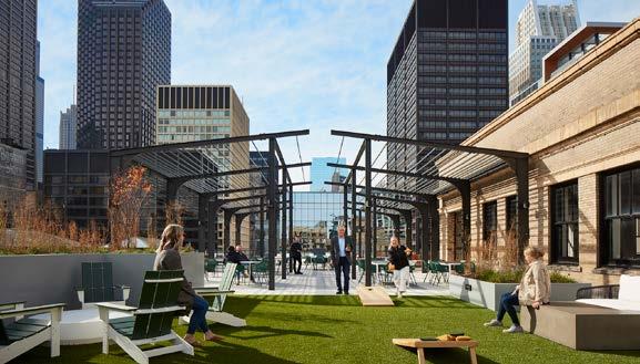 CLAYCO’S NEW ST. LOUIS OFFICE SHOWCASES A COMMITMENT TO ENVIRONMENTAL RESPONSIBILITY BY REPURPOSING EXISTING SPACE AND INTEGRATING SUSTAINABLE MATERIALS, GREEN SPACES, AND EV CHARGING STATIONS, ALL WHILE REDUCING EMBODIED CARBON TO MINIMIZE ENVIRONMENTAL IMPACT.