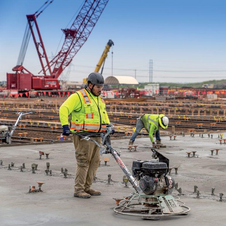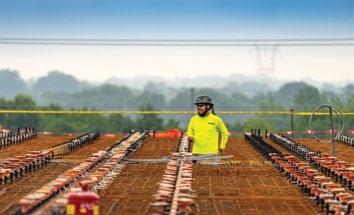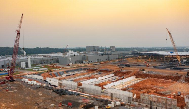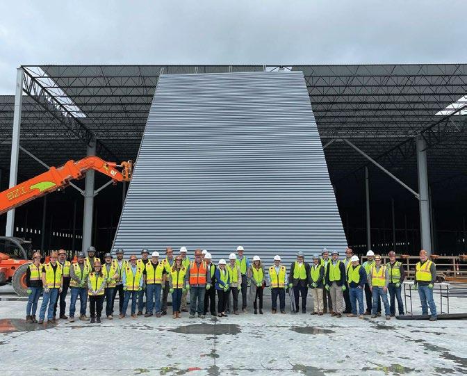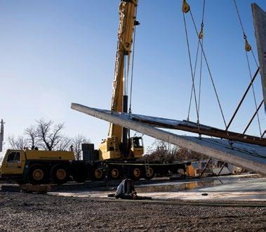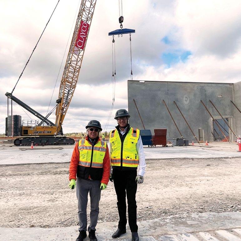 TILT-UP In October, Concrete Strategies began tilting up the massive panels for building one at ENTEK’s new manufacturing campus in Terre Haute, Indiana. Designed by LJC and Clayco Design & Engineering (CDE), the plans include four to six buildings, covering approximately 1.4 million square feet. When completed, this plant will produce lithium-ion battery separators for electric vehicles with a focus on reducing the carbon footprint. Bob Clark and Anthony Johnson visited the jobsite as the first panels were set.