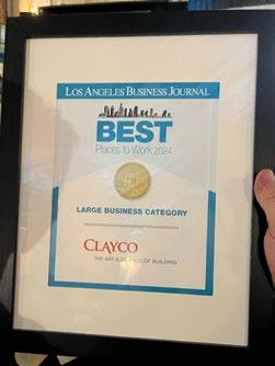 WORK HARD, PLAY HARD Clayco and LJC were awarded the top honor as “Best Places to Work” for the Large Business Category at the Los Angeles Business Journal’s 18th Annual Best Places to Work awards! Thank you to everyone who sent in a review, and congratulations to our Los Angeles office for all your hard work and effort in making Clayco such a great place to work.