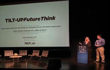 A consortium of industry stakeholders, including Concrete Strategies and Clayco, poured and erected three experimental concrete tilt-wall panels to compare performance between common and innovative concrete mixes, each of which achieves varying levels of embodied carbon reduction when compared to industry average benchmarks. Erika Winters-Downey and Kyle Kammer presented the study’s findings at the Tilt-Up FutureThink conference in Chicago.