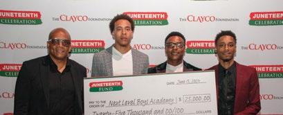 FLOURISHING FORWARD The Clayco Foundation hosted the 4th annual Juneteenth Fund celebration in Chicago. The evening featured entertainment and powerful messages from notable Chicago dignitaries. Seven $25,000 grants were given to community-based organizations that were chosen for their work which betters the individuals and communities they serve.