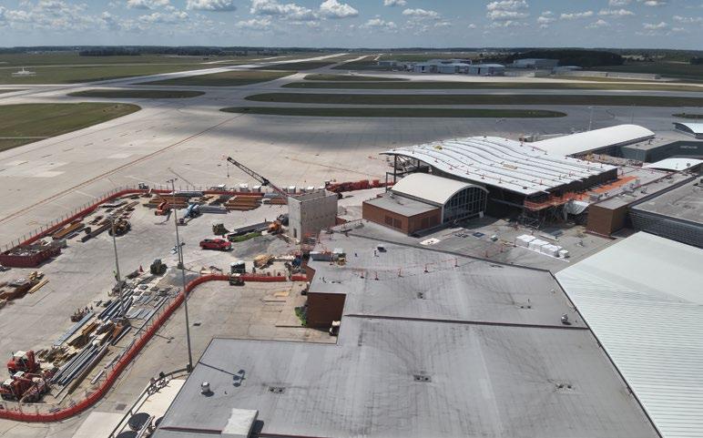 UP UP & AWAY Clayco continues construction on a 90,000-square-foot renovation and expansion at Fort Wayne International Airport. Designed by Mead & Hunt, The project includes the renovation of approximately 35,000 square feet of concourse area, as well as the expansion of approximately 9,000 square feet of first level space designated for airport operations.