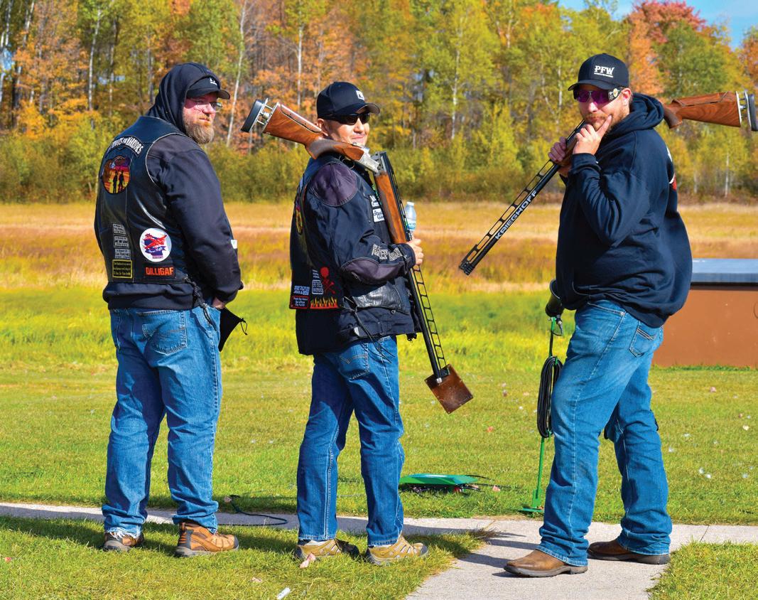 Warriors. Sure the leather looks great on them while they are volunteering, loading the trap houses, scoring and running the shoot. Their time for this event is donated to help the local Military Veterans.