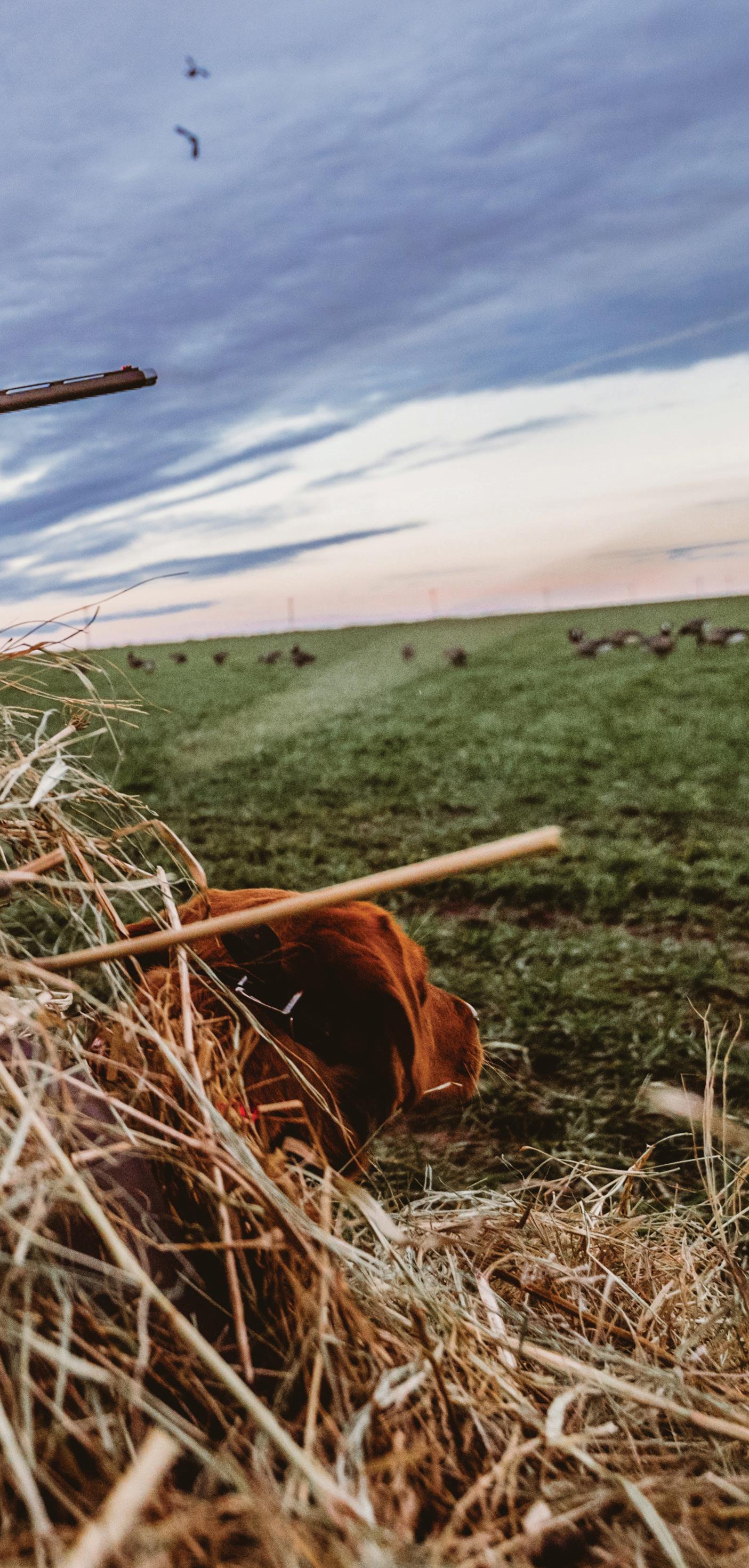 Layla, a British Labrador retriever, tracks for geese— and that magical autumn light—while on a hunt in Hobart, Oklahoma, with her owner, Keith Baker, customer success manager at Clayton Waco I in Texas. For more on Baker’s deep ties to Clayton, as well as his sporting life, see page 32.