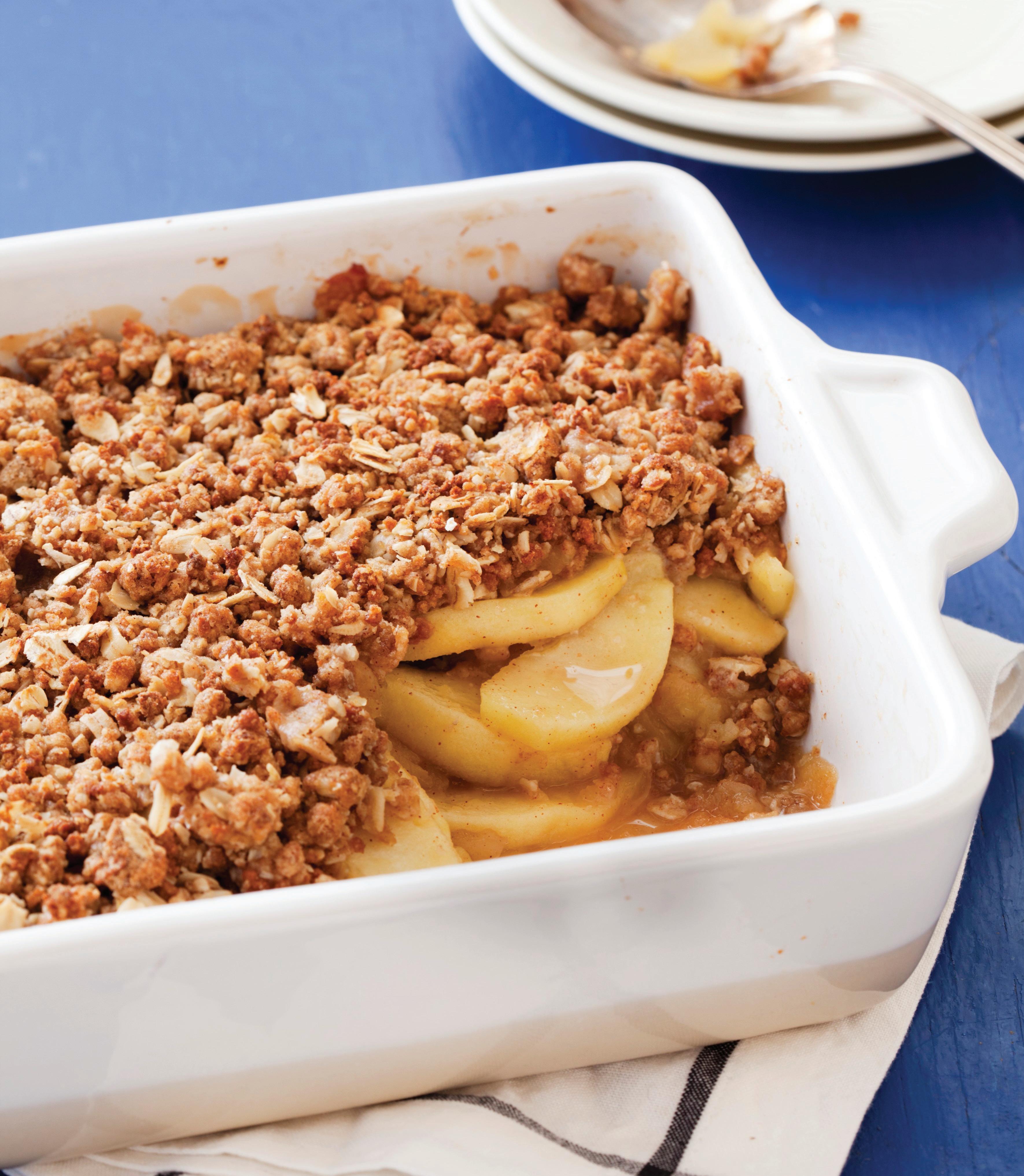 1. Make filling: Preheat oven to 350 F. Butter a 9-by-13-inch baking dish and place on a rimmed baking sheet. In a bowl, stir together apples, orange zest and juice, lemon zest and juice, sugar, cinnamon, nutmeg and salt. Transfer to baking dish.