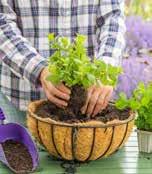 Fill the basket with compost, using your hands to pat if down as you go. Make a small hole in the center of the basket and place the mint plant in it.
