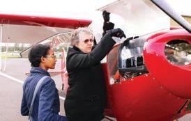 with a customary morning briefing, including safety items. The plan calls for the participants to be divided into five groups and rotate to at least five aviationrelated activities: aviation communications, the physics of flying, aircraft assembly and inspection, a moon habitat and a flight simulator. They will have time to talk with and ask questions of individuals representing different aspects of aviation. Pilots, mechanics, inspectors, air traffic controllers and airport operations staff will explain how they became involved in aviation.