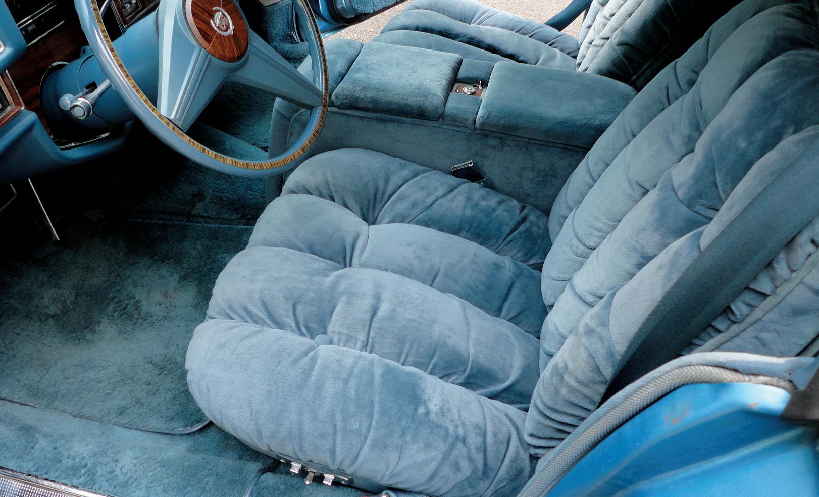 teenager, quite a depressing state of affairs. It took about six weeks, but one rainy November evening, a truck dropped my new ’41 ragtop off at the museum. The next chapter of my 1941 Cadillac adventure had begun. But there are times I miss my first ’41. The engine was so silent, and the interior, redone in 2011 in correct fabric, was so comfortable compared to black Naugahyde seat covers in the hot Indiana sun.