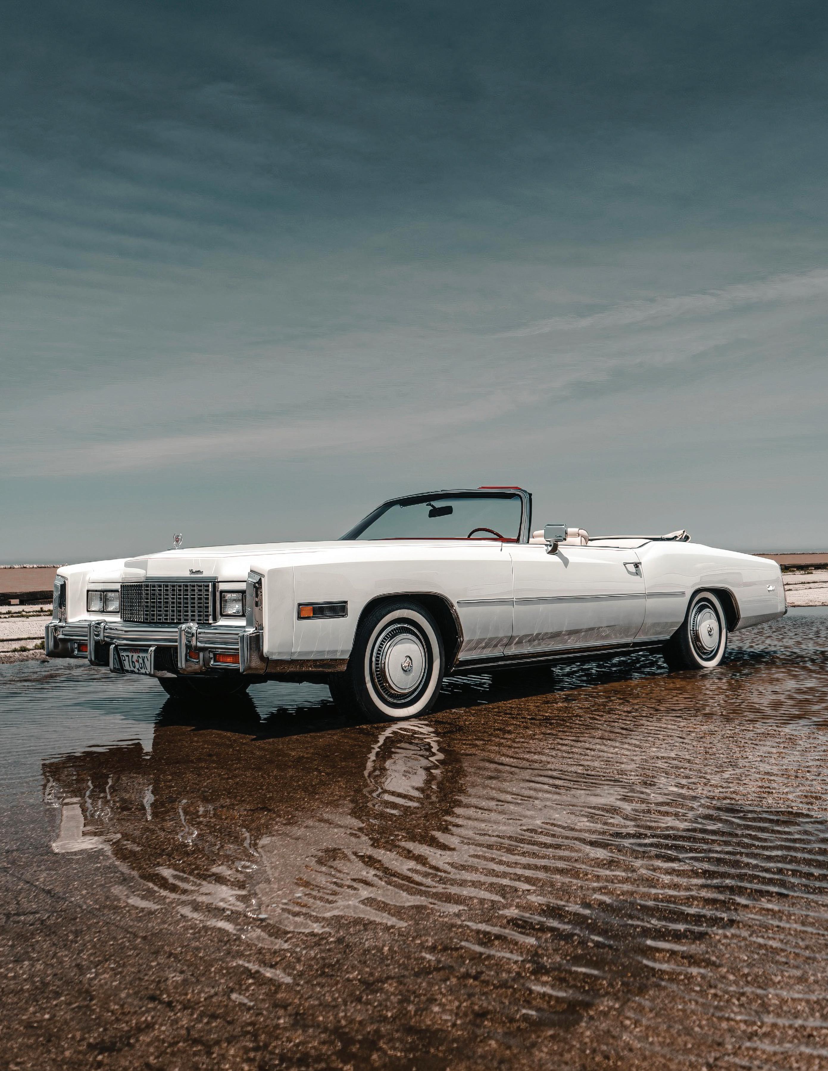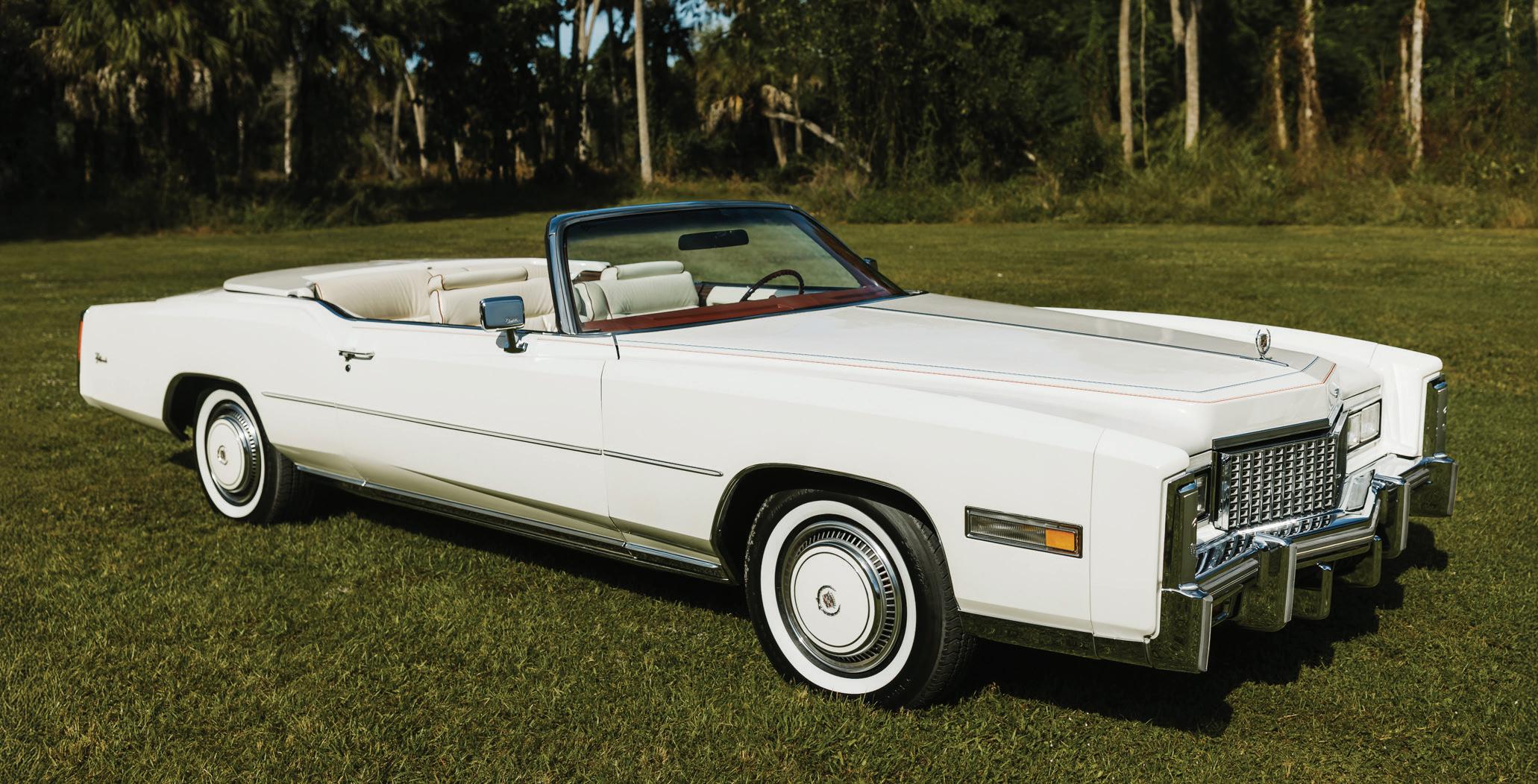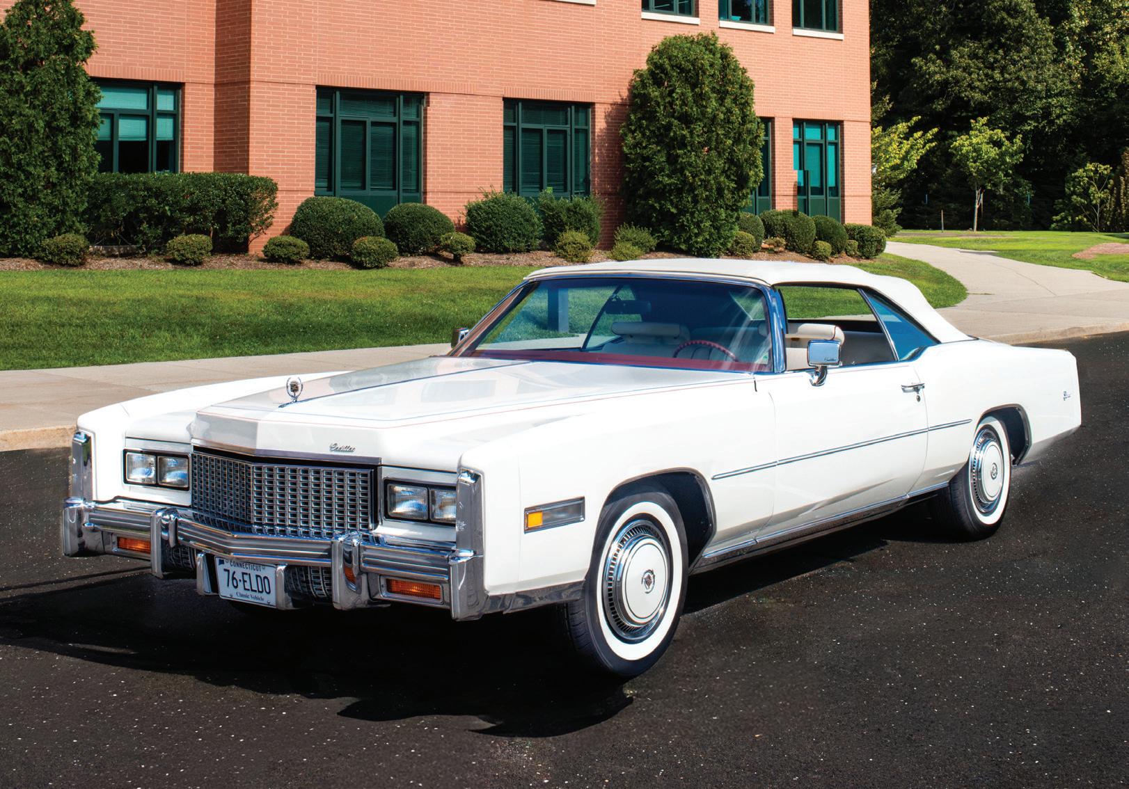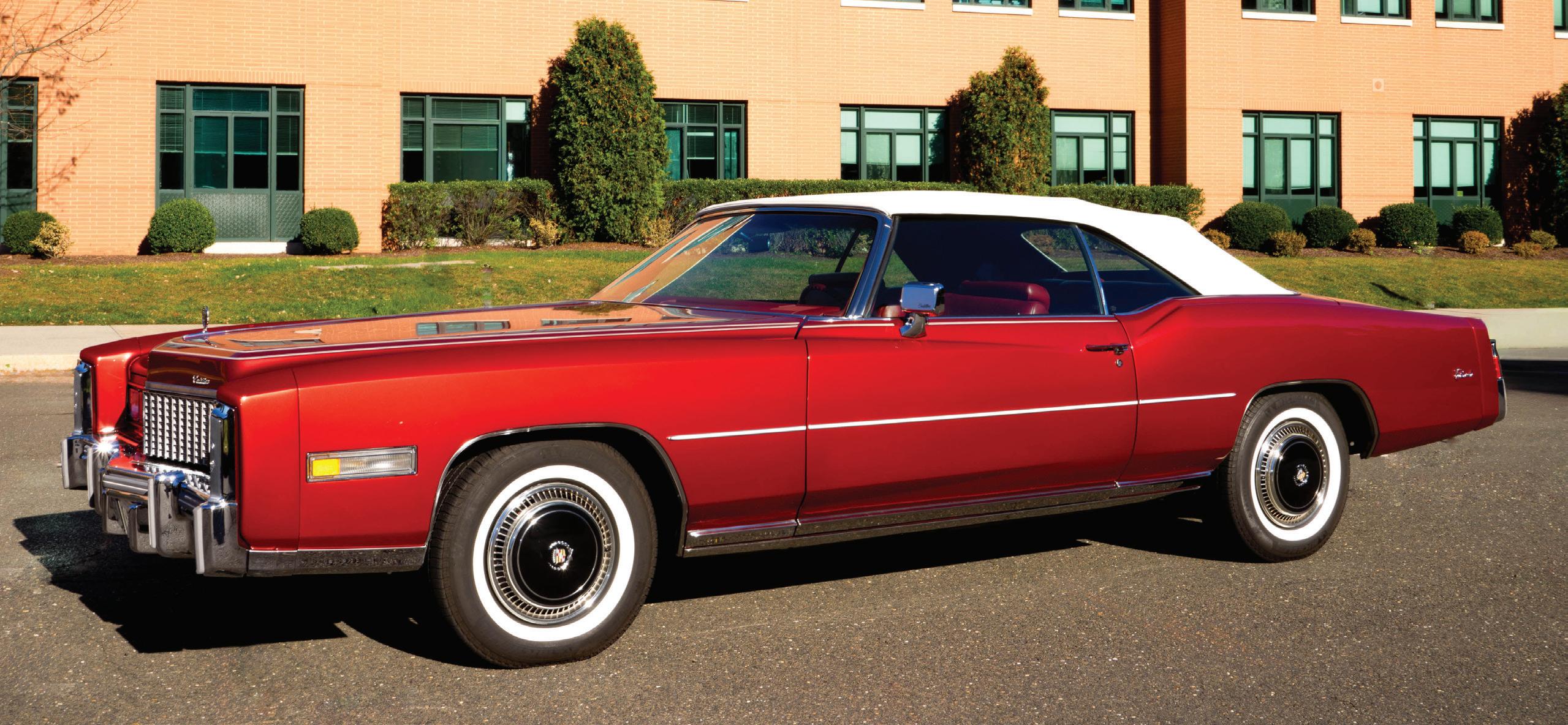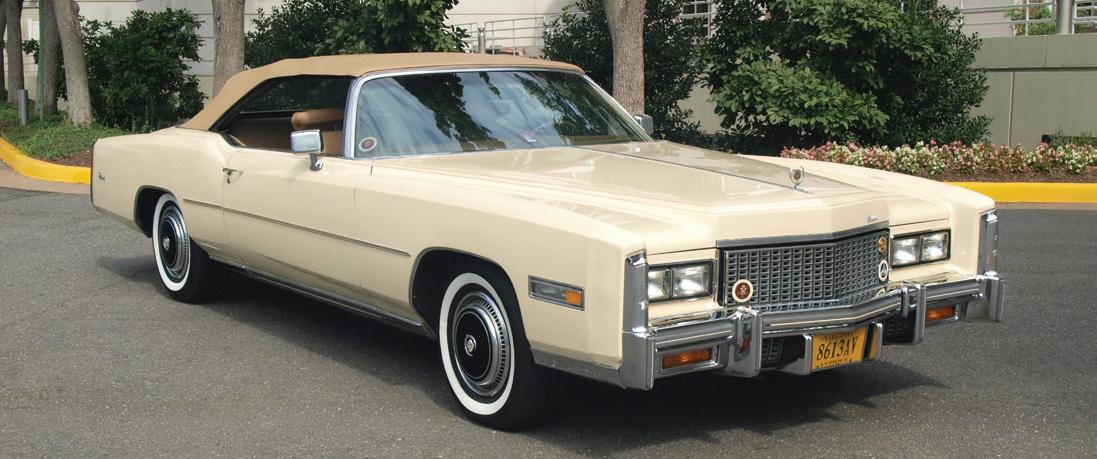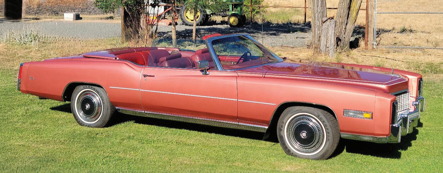 1976 Eldorado Convertible. Beautiful Firethorn Red. White convertible top. White leather interior. 46,000 miles from new. Maintained to the highest standards. Power steering. Power brakes. Power windows. Power seats. Air conditioning. AM–FM eight-track. Books. Manuals. Outstanding throughout. Asking $42,950. Norm Cohen, Marietta, GA, 770-883-9115. 4/26