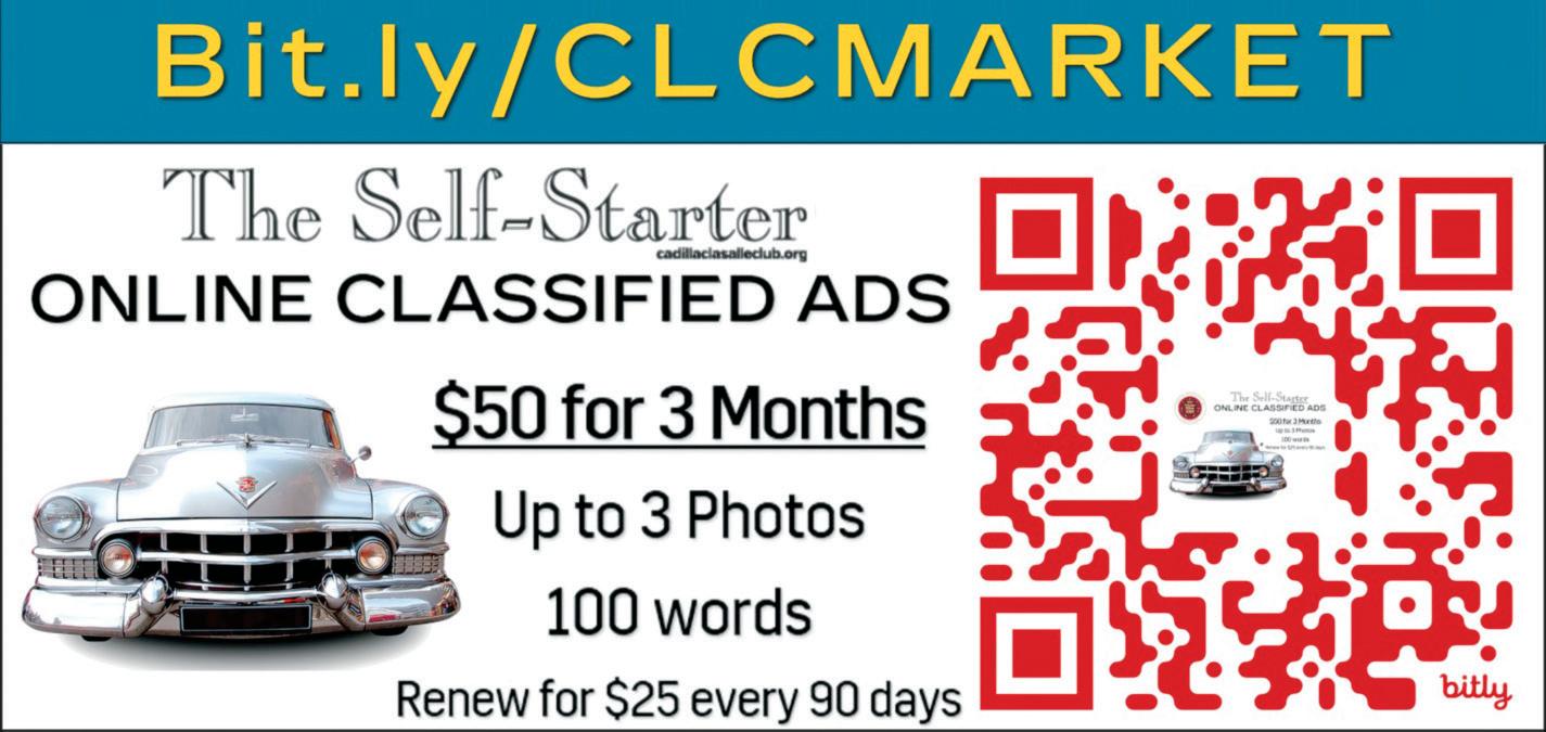 Please send all change-of-address informationto the Cadillac & LaSalle Club, c/o Cornerstone Registration Ltd., PO Box 1715, Maple Grove, MN 55311-6715, email CLC@ cornerstonereg.com, phone 763-420-7829.
