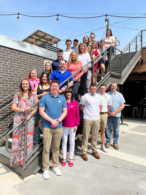 Back Row on Stairs (From Left to Right): Shelby Smith (Laird Law Firm), Kacie Royster (Pritchard Companies), Joshua Hawley (Kingland), Ryan Van Ostrand (Clear Lake Bank & Trust), Terry McCarl (Harvest Bible Chapel North Iowa), Jenna Haugen (First Citizens Bank), and Chelsi Ciavarelli (One Vision)