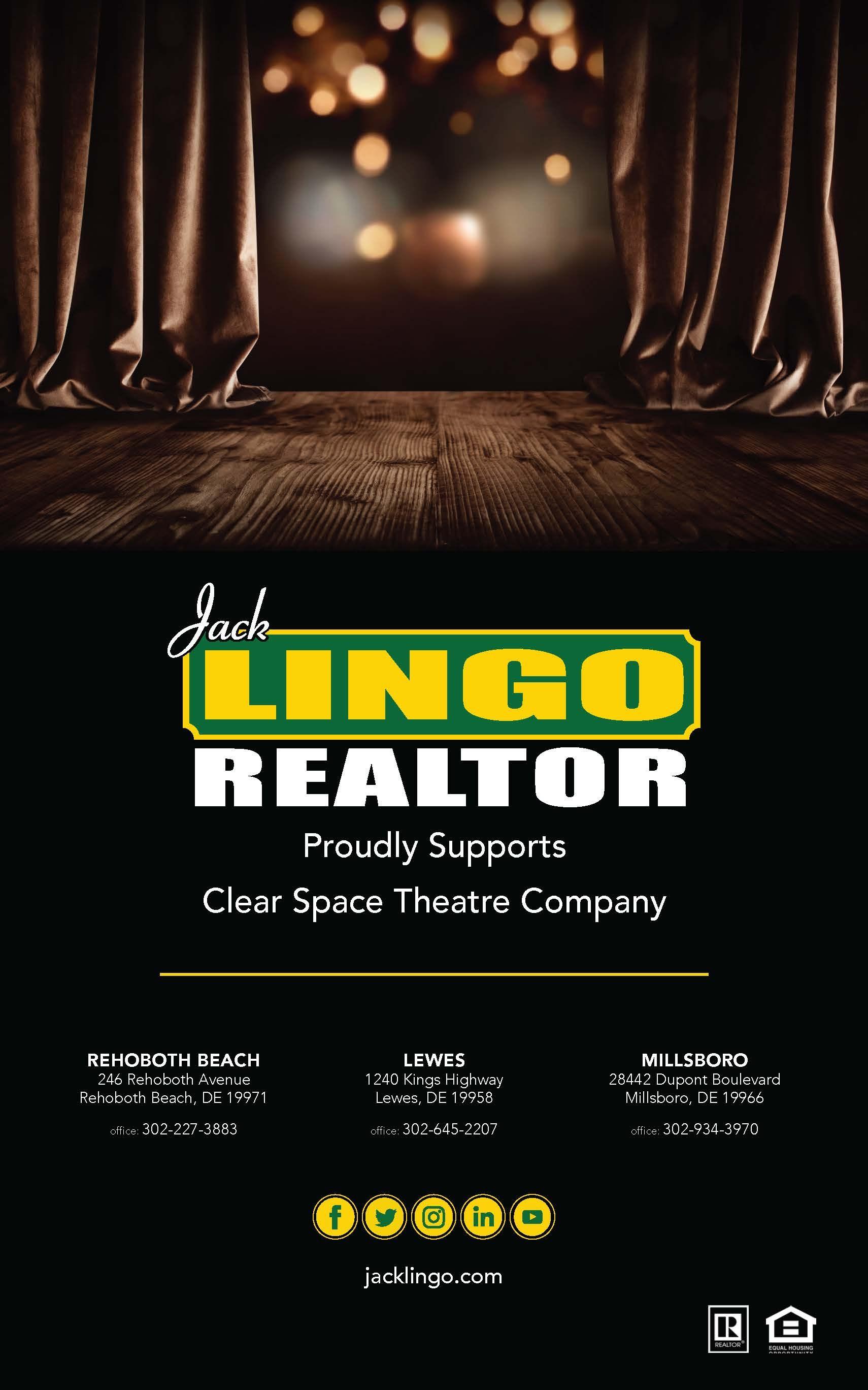 Clear Space Theatre Company, a 501(c)3 cultural organization founded in 2004, is committed to teaching, producing and presenting the performing arts. The term “clear space” refers to a focus on the process, knowledge, and humanity of arts performance: the idea that we find ourselves in what appears on the stage. Our Vision is to be a leader in the vibrant performing arts community of southern Delaware. Our Mission is to inspire audiences, artists, and students through high quality performance and educational experience.
