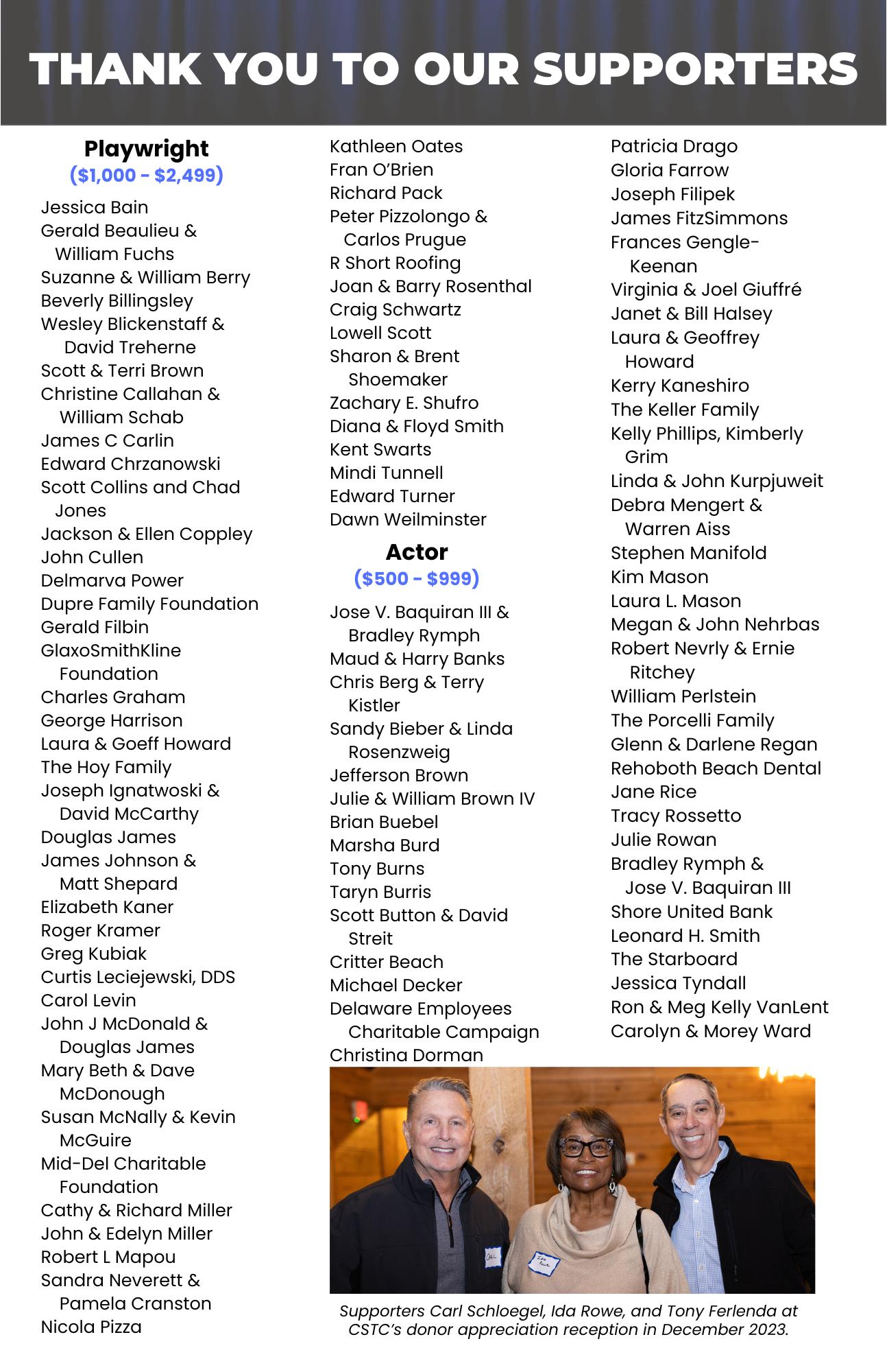 The Producers Circle serves as ambassadors for Clear Space Theatre Company to deepen its engagement within the community and to steward critical existing relationships in support of the organization. If you are interested in serving, please contact co-chairs Liz Leshine or Alice Willis or Managing Director Joe Gfaller.