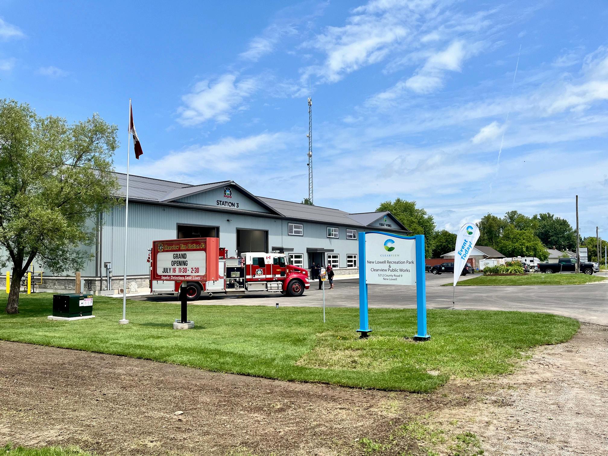 OnJuly16thClearviewwelcomedthecommun tocelebratetheGrandOpeningoftheNew LowellJointOperationsCentrelocatedat5212 CountyRoad9.Theribbonwascut,andresiden staffandmembersofCouncilsharedina CommunityBBQ.Attendeesreceivedtoursofth newfacilityandwereabletointeractwiththe inflatableFireSafetyeducationhouse,FireTruc andPublicWorksEquipment