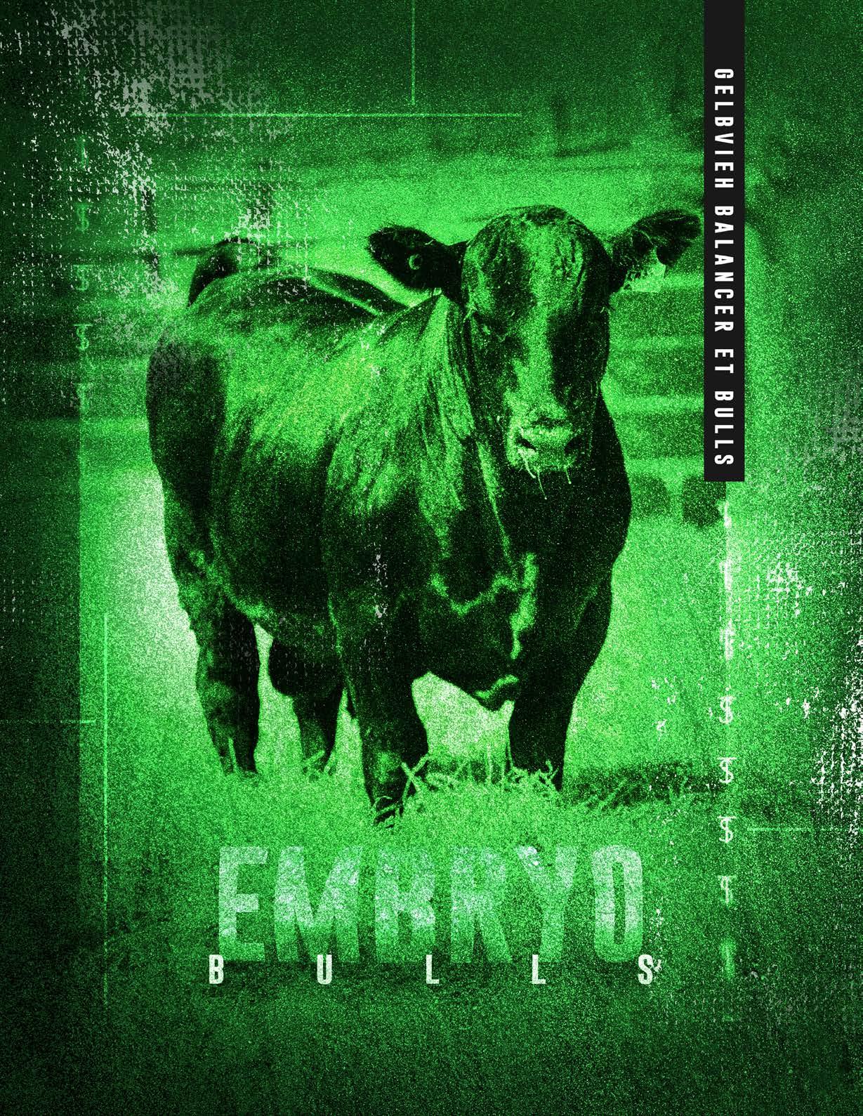 Now, for the bulls — This is our largest offering of ET bulls yet with our newest and most up-to-date pedigrees. They range from Purebred Gelbvieh to Red and Black Angus both. We were more stringent on culling this set, so all bulls have passed through two rounds of quality sorting, one round of disposition and a final round on semen check day. Round Prairie Feeders has yet again outdone themselves on development. Low-starch, high-forage diets have put these bulls in prime condition to turn out and go to work.