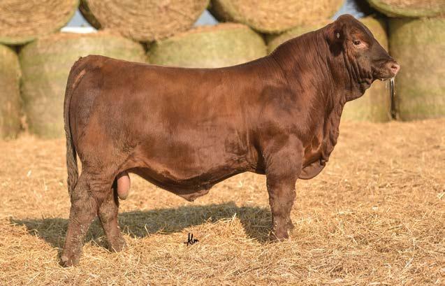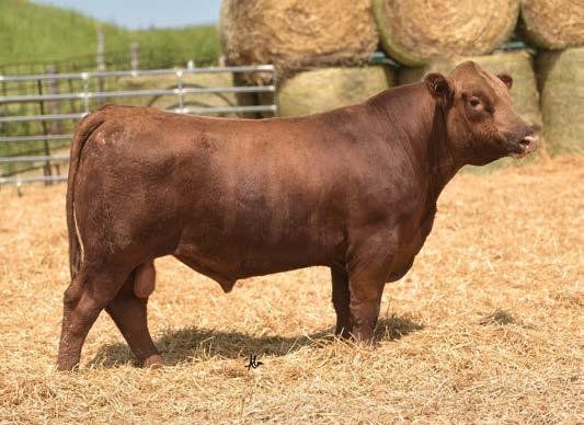 This homo-polled Stellar son has as much sale and muscle shape as any. This long-bodied bull will make a heck of a set of red-hided steers with a really sharp look. He’s in the top 40% of the breed or better for WW, YW, MILK, HP, YG, CREA, MARB, CFAT and FPI.