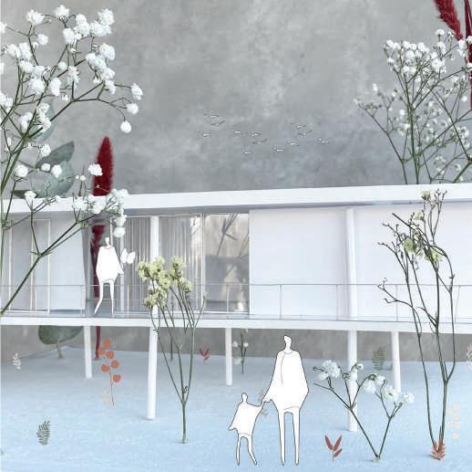 The creative line is an architecture project located in a handmade poplar grove, with strict rhythm trees. The project takes on the traces of the existing trees, the columns thus come to echo the location of the trunks of the poplars. The scale relationship between the project and the trees allows the architecture to slip under the foliage and thus highlights the verticality of the site. The goal of our project was to create a space for creativity, alone or with others. The project is a crossing, a creative journey. It would then be possible to meditate, to think about your art. Then, it would be possible to put it into practice and express yourself and fnally exhibit it. The goal is to make art accessible not only through a fnished work in a museum but to give visibility to its entire creative process.