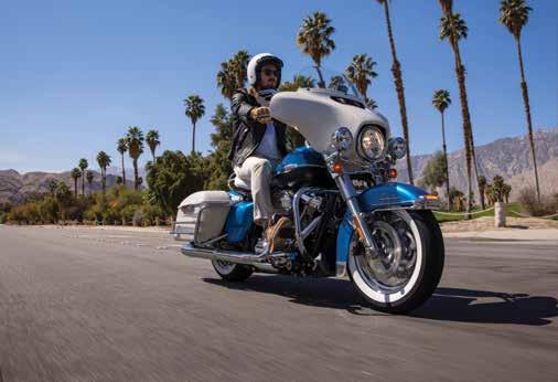 an iconic – and often imitated – HarleyDavidson styling cue, its shape an instant on-the-road identifier of many HarleyDavidson models and the foundational design of the fairing featured on current models. In 1969, the accessory fairing and saddlebags were only offered in white moulded fiberglass, and the Electra Glide Revival replicates that look with a Birch White painted finish. The period-inspired tank medallion and Electra Glide script on the front fender complete the look.