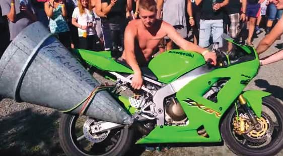 LOUD PIPES SAVE LIVES? Check. DILLIGAF? Tick. FREEDOM BROTHERHOOD RESPECT? Yep. CAUTION: DOES NOT PLAY WELL WITH OTHERS? Oh, hell, yes. BAD ASS BOYS RIDE BAD ASS TOYS? Afraid so. There was even his nickname stitched above his massively fat man-boob. So he sat high on my ladder.