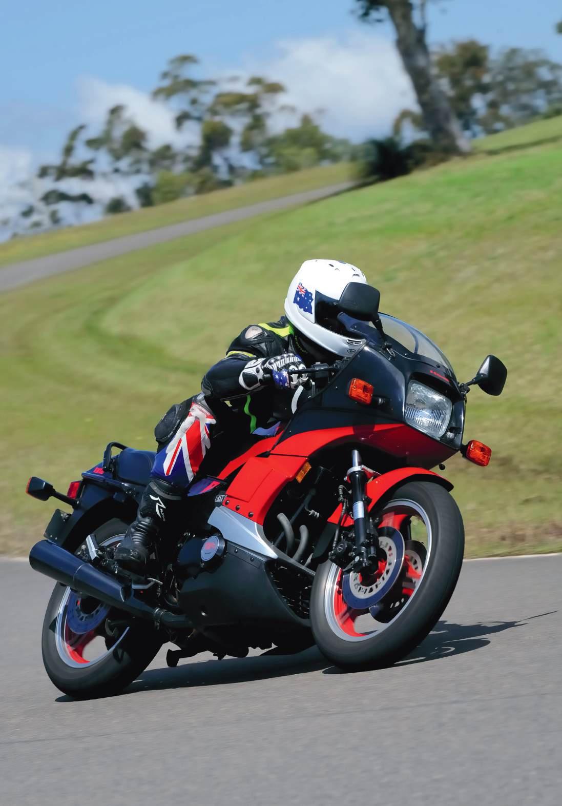 twins while the GPz and XJ old air-cooled twovalvers. The XJ even remained carburetted – which, although basic, proved to make it the most reliable of the Japanese turbo bikes. The machine missing from my test is the Suzuki XN85. The Katana styled 673cc 246kg 85hp bike was an epic fail and the most unreliable and poorly selling turbo bike ever. It was slower than its GSX750S naturally aspirated sibling and heavier – plus a lot more expensive. It also used to break down all the time and the turbochargers would seize, with a replacement cost almost as much as a new bike! I had one for the test and it was there on the day – however, you guessed it, the immaculate example with only a few thousand miles on the clock broke down before I got to ride it. The