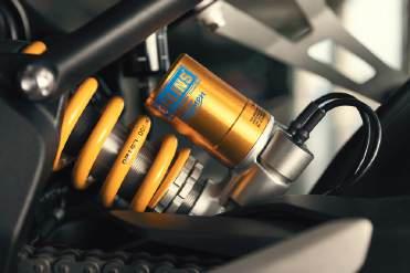 The sports edge to the RR is underlined by the premium specification of equipment that comes as standard. Instrumental to this is the new Öhlins Smart EC 2.0 electronically adjustable, semi-active front and rear suspension, which is the most advanced suspension system available from Öhlins. This new system has been specifically tuned to suit the RR’s geometry, to deliver the optimum balance of performance, comfort and control. It’s fully adjustable, even while riding, via the TFT instruments, and uses a highly-advanced suspension control unit to continually monitor input including riding style, speed and acceleration to automatically adjust both compression and rebound damping in response.