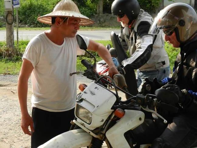 That means you’re kinda stuck where you are and you must, perforce, deal with the situation. No phone, no repair kit, no tools, and maybe a mate who will offer you advice and cigarettes, but sees no point in riding 100 kilometres to the nearest town only to find everything closed because it’s Sunday, so he’s gonna hang with
