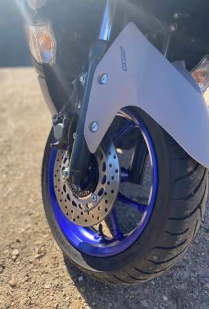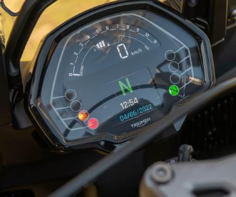 as tyre pressure monitoring, wirespoked wheels, centrestand, two-way quickshifter, alloy bashplate and steering damper.